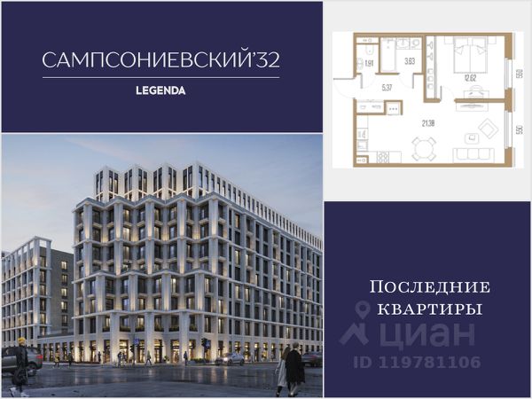 Продается 1-комн. квартира на 7-м этаже в проекте комфорт-класса GloraX Парголово. Общая площадь лота составляет 37,53 кв. м, из которых 10,82 кв. м отведено под жилую и 14,62 кв. м под кухонную зону. Номер квартиры - 196. Преимущества: - Квартира комфорт-класса - Зеленый район, Шуваловский парк в 20 мин. пешком - 10 мин. до КАД, 15 мин. до ЗСД - 5 эт. паркинг на 451 м/м - Закрытые дворы с видеонаблюдением - Детские площадки с геопласткой и бизиборадми - Сады и школы в шаговой доступности - Спортивные площадки и велодорожки - Собственный комьюнити-центр - Келлеры для хранения - Коммерческие помещения на 1 этажах GloraX Парголово — масштабный проект комфорт-класса в Выборгском районе Санкт-Петербурга. Место, продуманное до мелочей, где все, что необходимо — рядом. Архитектурно-пространственное решение отличается лаконичностью и строгостью и придает проекту свой характер. Внутренние дворы закрыты от внешнего мира, создавая приватную территорию для жителей. Живите на природе, но с комфортом мегаполиса. Десять минут на велосипеде или полчаса пешком — и вы окажетесь в одном из культовых мест отдыха петербуржцев: Шуваловском парке, Орловском заказнике с их чистыми карьерами или на Суздальских озерах. До ж/д станции "Парголово" 7 минут на автомобиле, до метро Проспект Просвещения 25 минут, КАД 10 минут, ЗСД 15 минут. В шаговой доступности остановка общественного транспорта. В шаговой доступности — собственные школы и детские сады. Здесь все создано для максимального комфорта каждого жителя. Приватное пространство внутреннего двора с беседками с розетками для работы и отдыха, зеленый двор с уютным многоуровневым освещением, детскими эко-площадками и спортивными workout создает неповторимую атмосферу, заряжающую энергией на новые свершения. Квартиры сдаются без отделки. Цена указана при 100% оплате или стандартной ипотеке. Узнайте подробности в Отделе продаж.