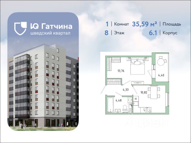 IQ Гатчина- жилой квартал комфорт -класса, в историческом пригороде Санкт-Петербурга городе Гатчина. Концепцию создания комплекса разрабатывало шведское архитектурное бюро Йоханнеса Товатта с европейским подходом к каждой детали. Транспортная доступность: 20 мин. на авто до КАД, 30 мин. до метро "Московская" и не больше часа до центра Санкт-Петербурга. В шаговой доступности от комплекса парки Гатчинского дворца, остановки общественного транспорта, а также ж/д станция "Татьянино". О проекте: комплекс имеет переменную высотность от 5-12 этажей, яркие фасады и безбарьерную среду. Места общего пользования выполнены по дизайн проекту, с современными бесшумными лифтами, колясочными и витражным остеклением. Все комнаты правильной квадратной формы, увеличенные окна с двойными стеклопакетами, высота потолков от 2,7 м2 до 3,02 м2 на последних этажах. Инфраструктура: на первых этажах комплекса работают супермаркеты, аптеки, салоны красоты и уютные кафе, прямо напротив жилого комплекса - крупный торговый центр. В квартале уже открыла свои двери современная школа на 825 мест и детский сад на 120 мест, а также в ближайшее время запланировано строительство второго детского сада. Благоустройство: квартал полностью имеет закрытые дворы, в которых каждый чувствует себя максимально безопасно, работает круглосуточное видеонаблюдение, доступ только для жителей и их гостей по системе IP домофония, концепция "дворы без машин", зеленые аллеи, ландшафтное озеленение, во дворах установлены современные игровые комплексы, спортивные площадки. Для владельцев животных предусмотрены лапамойки. Уникальный образовательный кластер: Гатчинский государственный университет (ГГУ), Государственный институт экономики, финансов, права и технологий, "Гатчинский педагогический колледж имени К.Д. Ушинского", ЧОУ "Первая академическая гимназия", МБОУ СОШ No12 "Центр образования", Детские сады No26 и No52 Первый дома комплекса уже сданы и заселены. В комплексе так же работает "Живи клуб", который объединяет жителей общими идеями и хобби.