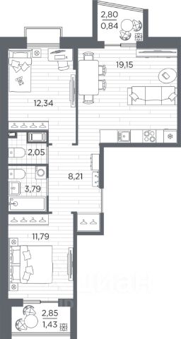 Общая приведенная площадь квартиры 85.3 м2
