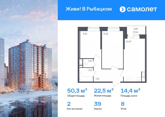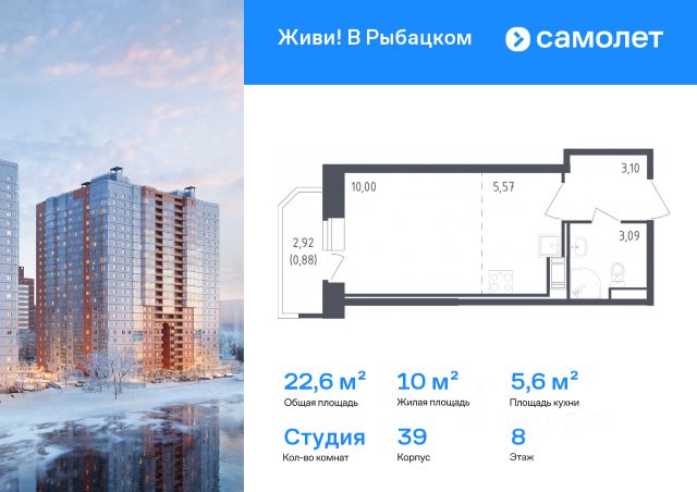 Строим кварталы для жизни с заботой о будущем. Предлагается 2-комнатная квартира комфорт-класса 51,94 кв.м в корпусе 39 на 8 этаже, в ЖК "Живи! В Рыбацком" Квартира с предчистовой отделкой. Доступность дополнительных опций уточняйте у застройщика. Приобрести квартиру возможно по специальным акциям от застройщика, с текущими условиями акций можно ознакомиться в блоке "Акций". Цена динамическая и может отличаться, уточняйте актуальность у застройщика. Квартал "Живи! В Рыбацком" в Невском районе Санкт-Петербурга расположен рядом с рекой Славянкой и парком. Всего 20 минут пешей прогулки — и вы у метро "Рыбацкое". Автомобилисты будут добираться до КАДа за десять минут. В квартале работают два детских сада, школа и кабинет врача. На первых этажах зданий открыты магазины, кафе и салоны красоты. Во дворе — зеленые бульвары, воркаут-площадка, спортивный и игровой кластеры. Для машин — подземный паркинг. Кирпично-монолитные дома с каменной облицовкой — воплощение долговечности и тепла. Есть в квартале и камерный 30-й корпус, в нем восемь этажей, 70 квартир и приватный двор-парк. В сквозных парадных — безбарьерная среда, помещения для хранения колясок и велосипедов и система видеонаблюдения.