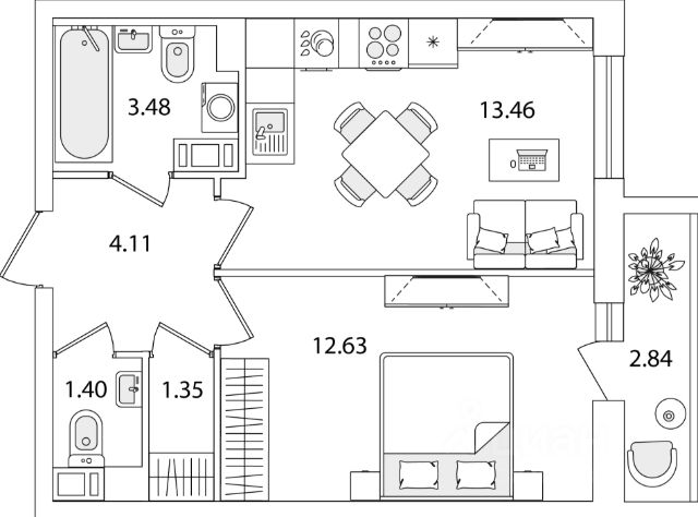 1705995 Тихая уютная квартира, в уникальном проекте Комфорт-класса ЖК "Английская миля" с прекрасными, интеллигентными соседями по лестничной площадке.