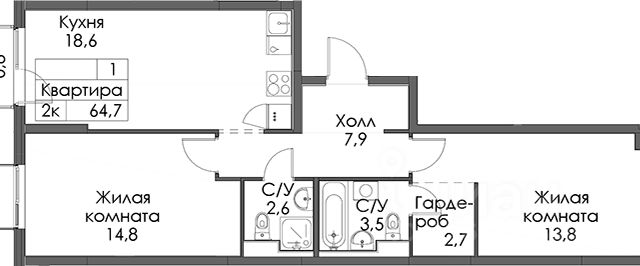 Продуманная и функциональная планировка включает просторную прихожую с отдельной гардеробной, уютную кухню-столовую, оснащённую необходимой современной мебелью и техникой (варочная плита, вытяжка, посудомоечная машина, микроволновая печь, холодильник), полностью меблированную большую спальню с выходом на собственную лоджию — место для отдыха и наслаждения видами города, а также раздельный санузел с ванной, раковиной и стиральной машиной. В квартире выполнен свежий ремонт: на полу уложен качественный ламинат, стены окрашены, установлены радиаторы отопления, прочные межкомнатные двери и дорогие двухкамерные стеклопакеты на окнах.