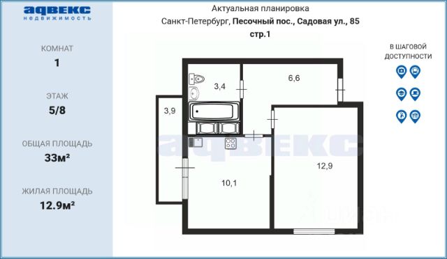 Продаётся 1-комнатная квартира в сданном доме ( Школьная, 82 (Корпус 4)), срок сдачи: II-кв. 2025, общей площадью 36.7 кв.м., на 8 этаже. Комфортный жилой комплекс недалеко от Финского Залива. 5 уже построенных кирпично-монолитных домов высотой от 8 до 9 этажей. Санкт-Петербургская регистрация, зеленое окружение и собственная инфраструктура делают "Курортный Квартал" отличным вариантом для любителей размеренного образа жизни. Транспортная доступность Жилой комплекс расположен в 6 км от КАД, путь до него займет 8 минут на автомобиле. До Выборгского шоссе можно доехать за 6 минут. До железнодорожной станции "Песочная" всего 15 минут пешком. Отсюда за 27 минут можно доехать до Финляндского вокзала. Дорога до станции метро "Проспект Просвещения" займет 20 минут на автомобиле или 30 минут на общественном транспорте. Столько же времени займет путь до станции метро "Озерки". Окружение Жилой комплекс расположен в живописном поселке Песочный в Курортном районе Санкт-Петербурга. Отсутствие производств, близость к лесам и свежий морской воздух - здесь прекрасная экология. Берег Финского залива с пляжами и базами отдыха, Меднозаводский разлив и Сарженское озеро находятся всего 20 минутах на автомобиле. Проводите выходные с семьей и друзьями не уезжая далеко от дома. Инфраструктура В "Курортном Парке" есть все для комфортной жизни: школы и спортивные секции, медицинские и торгово-развлекательные центры. Специально для жителей мы построили детский сад на 75 мест. Благоустройство Дворы жилого комплекса - приватное пространство с детскими и спортивными площадками и зелеными зонами отдыха. Они закрыты от посторонних - на территорию не зайдет никто чужой. Плоскостные паркинги выведены за пределы дворов, так что вы можете спокойно отпускать детей гулять.