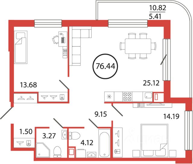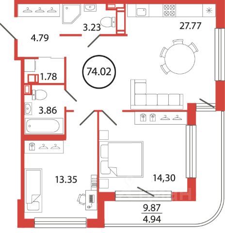 Продаётся e3 комнатная квартира (евро) в жилищном комплексе "Энфилд" (корпус Дом 18 секция 4). Общая площадь 74,42 кв. м, площадь комнат 13,33 кв.м, 13,33 кв.м. 2 санузла. Квартира расположена на 9 этаже 12 этажного дома. Срок сдачи корпуса IV квартал 2027 года. Современный жилой квартал "Энфилд" от компании Arsenal объединяет в себе преимущества хорошей экологии и удобного расположения рядом с городом. Квартал расположен на территории Мурино-Бугры, в 10 минутах от метро Девяткино. В состав ЖК "Энфилд" войдет 17 домов высотой до 12 этажей, 14 из них уже построено и сдано. На территории работает два детских сада и школа с углубленным изучением иностранных языков. Квартал славится красивой территорией, пешеходным бульваром с фонтанами, детскими и спортивными площадками, инфраструктурой для отдыха. В 5 минутах ходьбы расположен гипермаркет "Лента", из квартала предусмотрен удобный выезд на КАД.
