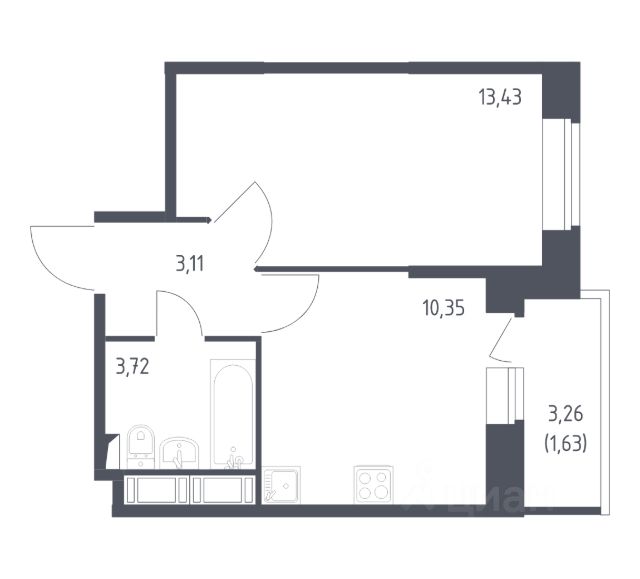 В продаже студия в корпусе 35.2 ЖК 'Новое Колпино'. Квартира располагается на 9 этаже, общая площадь 25.93 м2.