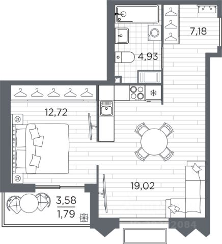 — застеклённая лоджия и открытый балкон,
