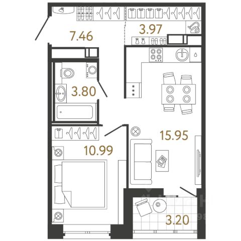 Кухонный гарнитур, варочная панель, холодильник, микроволновая печь, вытяжка, стиральная машина и вся мебель на фото - всё остается покупателю. В сан. узле расположена ванна, что является редкостью для студий. Квартира очень светлая, есть просторная лоджия, из окон открывается прекрасный вид на город.