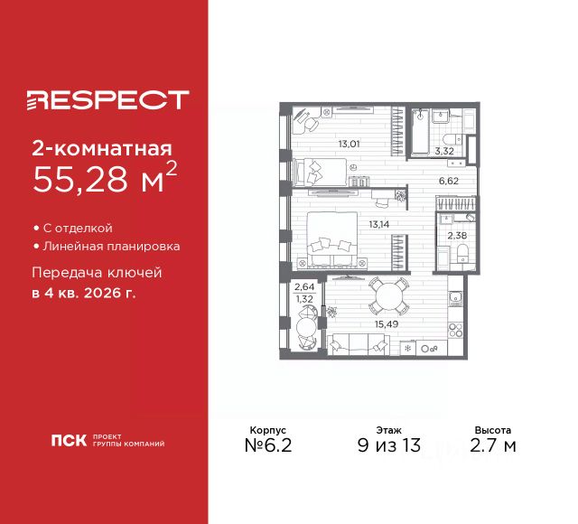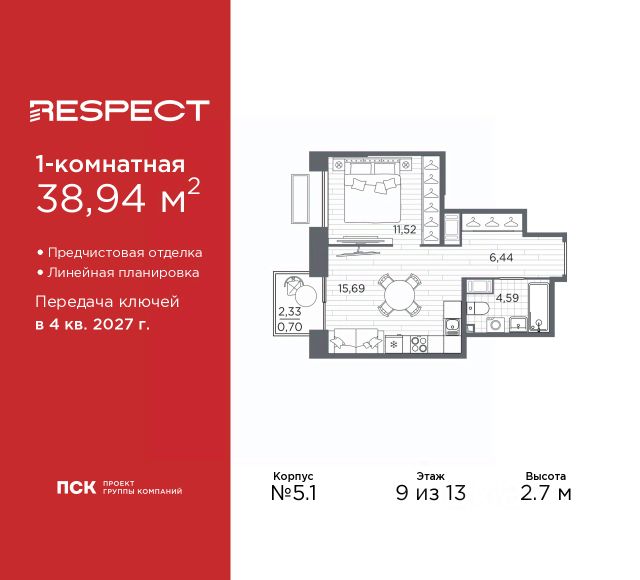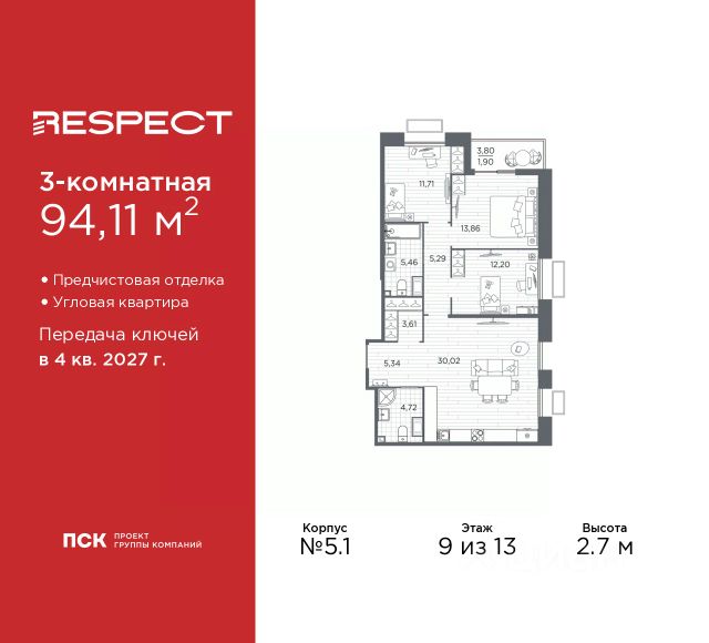 Продается 3-комн. квартира с предчистовой отделкой в ЖК "RESPECT" на 9 этаже. Общая площадь: 77.14 кв.м., жилая: 37.67 кв.м., площадь просторной кухни-столовой: 13.97 кв.м. Угловая квартира, окна oбecпeчивaют paвнoмepнoe ocвeщeниe в тeчeниe дня. В квартире одна лоджия, два совмещенных санузла. Высота потолков 2.7 м. Квартира будет сдана с отделкой WHITE BOX, в которую включены следующие виды работ: - заливка стяжки; - установлена система отопления квартиры; - подготовлены потолки; - все стены выровнены, загрунтованы и отштукатурены; - электрическая проводка разведена по комнатам. Квартира будет готова к чистовой отделке. Квартира находится в корпусе 5.1. Дом монолитный, одноподъездный, высотой 13 этажей. На этаже 7 квартир. В подъезде 1 пассажирский и 1 грузовой лифт. Начало строительства - 1 квартал 2026 года. Окончание строительства - 4 квартал 2027 года. Оформление сделки по договору долевого участия. В шаговой доступности от жилого комплекса находятся станции метро (расстояние по прямой): "Лесная" (800 м), "Площадь Мужества" (1.4 км), "Выборгская" (1.9 км), также недалеко от этого корпуса находятся станции метро: "Академическая", "Политехническая". Квартал строится на Полюстровском пр, 87, в одной из самых востребованных локаций Петербурга. В 10 минутах пешком - метро "Лесная" и в 10 минутах на транспорте - Петроградская сторона. Высота домов от 7 до 13 этажей. На территории Respect строится школа на 1125 учащихся и детский сад на 240 мест. Запроектированы собственная газовая котельная, закрытая территория, дворы без машин и подземные паркинги с лифтами. Вентилируемые фасады облицованы клинкерным кирпичом. Дома из этого материала служат веками, являясь гордостью хозяев. Дизайн парадных зон и входных групп - сочетание лаконичности отделки и декоративных элементов с текстурами из натурального камня и дерева с приглушенной подсветкой теплым светом. Во входных группах расположены гостевые зоны с мягкой мебелью. Вся территория квартала будет связана единой концепцией благоустройства, разработанной ландшафтным бюро L.BURO. В основе - идея создания увлекательного ландшафтного пространства для насыщенной жизни, включающего в себя пейзажные зоны, современные архитектурные композиции, открытые террасы на стилобатах с зонами отдыха и парклетами, спортивными площадками. Это пространство для людей всех возрастов и различных увлечений. На эксплуатируемой кровле на уровне первого этажа в домах 1 и 4 будут обустроены общественные видовые террасы. В квартале запроектированы внутренние закрытые территории дворов домов без доступа автомобилей и безбарьерная среда для велосипедистов и колясок. Предусмотрены IP-домофония с функцией дистанционного открывания калиток и парадных, а также дистанционный сбор показаний счетчиков и мобильное приложение для жителей. Для безопасности жителей квартала - круглосуточное видеонаблюдение и служба охраны. В каждой квартире предусмотрены внешние корзины для кондиционеров. #z6d95E