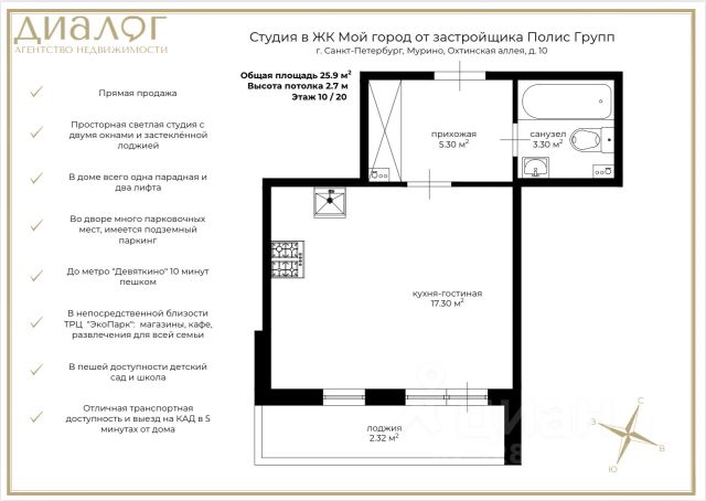 Цена со скидкой до 30% в прямой продаже от застройщика — только в этом месяце. Беспроцентная рассрочка. 1-к квартира в ЖК квартал "Воронцовский" на 2-м этаже. Общая площадь 38,56. Без отделки. Квартал "Воронцовский" расположен в Новом Девяткино, молодом и наиболее активно развивающемся районе петербургской агломерации. Великолепно интегрированный в транспортную и социальную инфраструктуру Ленинградской области и Петербурга, этот район по праву можно считать оптимальным среди всех сателлитов города. При этом он сохранил преимущества загородных территорий поблизости расположены зеленые массивы, водоемы, определяющие живописный ландшафт, места для спокойного и активного отдыха. Квартал "Воронцовский" расположен ближе всех строящихся жилых комплексов к метро "Девяткино" - всего 15 минут пешком, и вы на месте. Рядом выезд на КАД удобно добираться до любой точки города. Или шоссе в сторону Токсово а это потрясающая природа Кавголовских озер, горноложные курорты и атмосфера лучшего загородного направления Петербурга. Купить квартиру в ипотеку в Мурино.