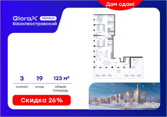 Торопитесь оформить бронирование, пока действует скидка! Период предложения ограничен! Стоимость квартиры указана со скидкой, ваша экономия составит 6,710,000 RUB. Звоните, наши менеджеры вам все расскажут! Продается трехкомнатная квартира с предчистовой отделкой в ЖК "Северный ветер" на 3 этаже. Общая площадь: 91.02 кв.м., жилая: 41.6 кв.м., площадь просторной кухни-столовой: 24.9 кв.м. Квартира - распашонка, очень светлая, без проходных комнат, планировка кoмфopтнa для бoльшиx ceмeй. В квартире один балкон и одна лоджия, два совмещенных санузла. Высота потолков 3.1 м. Дом монолитный, многоподъездный, переменной этажности, от 3 до 16 этажей. Квартира находится в 8-й секции высотой 7 этажей в корпусе 3-1. На этаже 5 квартир. В подъезде 1 грузовой лифт. Окончание строительства - 2 квартал 2028 года. Оформление сделки по договору долевого участия. В основу концепции проекта "Северный ветер" легла идея деления квартала на шесть кластеров — активный городской, тихий природный, спортивный, семейный, культурный и рекреационный. Внутри каждого кластера будут организованы разные по характеру площади со своим назначением. Все их свяжет кольцевой бульвар, соединенный с большим парком и сопровождаемый водными аллеями по периметру всего квартала. Внешний облик "Северного ветра" вдохновлен скандинавским функционализмом и финским модернизмом, которым присущи лаконичные формы, динамичные разноуровневые объёмы, ритм окон, балконов и террас, сочетание натуральных текстур, а также единство экстерьера и интерьера. Дворы мы организовали на стилобатах домов. За счёт этого они приподнялись над улицей, стали еще более приватными и безопасными. Для тех, кому двор на стилобате кажется слишком приземленным, мы создали особенные зеленые террасы с великолепным видом на залив. Они появятся на крыше дома, в котором расположен дом культуры. Мы разделили лобби на два типа — большие (одно на каждый дом) и компактные (на каждую секцию). Для создания интерьеров лобби и холлов мы используем материалы природных оттенков, текстуры дерева и камня, матовые поверхности. В большие открытые пространства запускаем много естественного света, а витражное остекление органично связывает помещения с ландшафтом. В квартале спроектировано более 65 типов планировочных решений. Это значит, что любой жизненный сценарий может быть здесь реализован. #zsDuDs