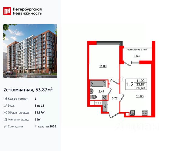 Продается уютная 1-комнатная квартира от застройщика в жилом комплексе "Титул в Московском" в престижном Московском районе. До метро можно добраться пешком всего за 25 минут. Удобная, классическая, функциональная европланировка, большая кухня-гостиная 15.49 м², вместительная прихожая 3.39 м². Общая площадь квартиры - 34.52 м², жилая 11 м², высота потолка 2.77 м. Квартира продается с отделкой "NORD LINE WHITE ВК NEW". Что особенного в ЖК "Титул в Московском"? • Престижный Московский район • Авторская архитектурная концепция • 2 центральные входные группы с ресепшн и лаундж-зонами • Кленовая аллея с арт-стеллой, цветочная аллея и сад трав • Уютные дворы-патио, площадки SetlKids и SetlSport • Инновационный Лицей Setl с оригинальной архитектурной концепцией и уникальной образовательной средой