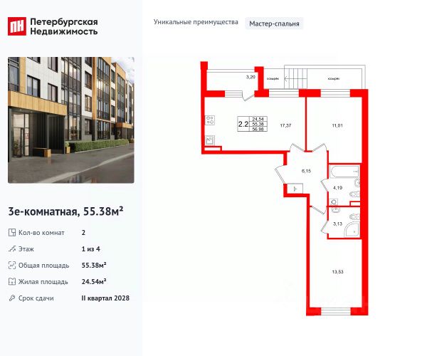 Продается 2-комнатная квартира в ЖК "Пулково Лейк" на 2 этаже. Общая площадь составляет 53.30 кв. м. Квартира с чистовой отделкой. Жилой комплекс "Пулково Лейк" располагается по адресу Санкт-Петербург, Московский. Пулково Лейк - проект малоэтажной застройки на берегу озера на границе Московского и Пушкинского районов. Дома высотой всего 4 этажа, квартиры от уютных студий до трехкомнатных квартир для большой семьи. Широчайший выбор планировок, включая квартиры с мастер-спальнями, патио, каминами, саунами, двухуровневые квартиры. Школа, детские сады, парк на берегу озера и выезды на Пулковское и Петербургское шоссе. Расположение: • 5 мин на авто до Аэропорта Пулково; • 10 мин на авто до станций метро "Московская; • 10-15 мин на авто до городов Пушкина, Павловска и Гатчины; • 20 мин на авто до центра Санкт-Петербурга. Квартиры в проекте сдаются с предчистовой и чистовой отделкой Соmfоrt Stоnе и Соmfоrt Wооd по современным стандартам - Вы можете сами выбрать отделку, подходящую именно Вам. Дома оборудованы самыми современными инженерными системами и "Умным домом". В рамках проекта будет построена современная школа на 925 мест и 2 детских сада на 160 и 240 мест, выезды на Пулковское и Петербургское шоссе, а также храм рядом со сквером "Пулковский рубеж". Общественное пространство вдоль берега озера превратится во всесезонный парк, в котором найдется место для любых активностей от пробежек, катания на САПах и велосипедах до отдыха в шезлонгах и любования закатом солнца. Зимой будет работать каток, проложен лыжный маршрут, предусмотрено место для новогодней елки и горок для детей. Для Ваших питомцев - площадка для выгула собак. Преимущества: • Высота потолков от 2,6 до 4,5 м; • Уникальные планировки; • Парк на берегу озера; • Система "Умный дом"; • Дворы без машин; • Колясочная в парадной; • Видеонаблюдение в холлах, на первом этаже, в лифтах и в паркингах. Успейте приобрести квартиру на выгодных условиях! Чтобы узнать подробности, обращайтесь за консультацией по телефону. Продам квартиру в ипотеку в районе Пушкинский в Санкт-Петербурге.