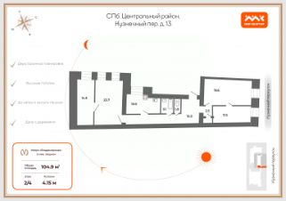 Очень удобным является и местоположение квартиры: два железнодорожных вокзала (Московский -15 минут ходьбы и Витебский -20 минут), и пять станций метро: (Владимирская,Достоевская, Маяковская, пл.Восстания,Лиговский пр.) Зарегистрированных несовершеннолетних детей нет. Четыре взрослых собственника.