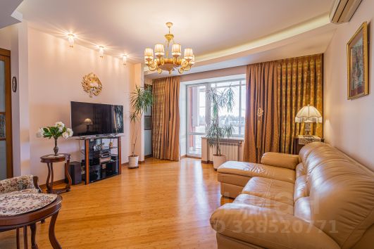 Общая площадь квартиры составляет 145 кв. м, три комнаты площадью 20,4+20,8+21.1кв. м, а кухня гостиная поражает своими размерами — 42,3 кв. м. 2 сан.узла, сауна, 2 гардеробные, застекленные лоджия и балкон общей площадью 15 метров, откуда открывается панорамный вид. Квартира находится на 6 этаже 7-этажного дома с высотой потолков 3 метра, что добавляет простора и света. Окна выходят как на улицу, так и во двор, поэтому в квартире всегда светло и уютно.