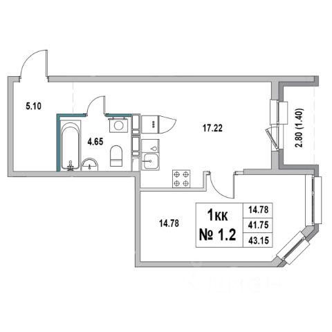 Продаётся 1-комнатная квартира в строящемся доме (Дом 1), срок сдачи: I-кв. 2026, общей площадью 43.15 кв.м., на 1 этаже. Новый жилой дом от застройщика "Унистрой" расположен по адресу Ленинградская область, Выборг, 2-я Южная улица.