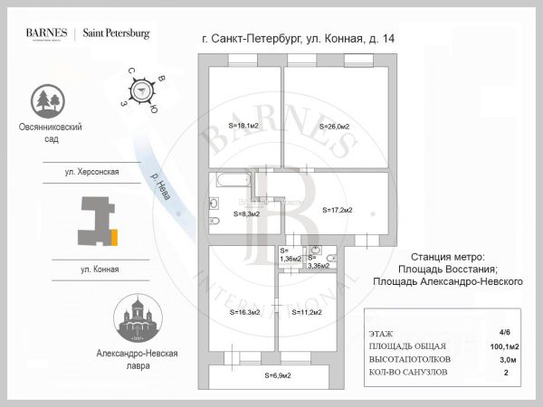 • ✓ В базе Циан 1 квартир в кирпично-монолитном доме на улице Конная в Санкт-Петербурге