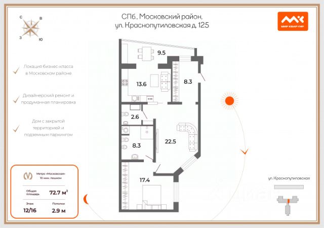 Вашему вниманию предлагается уникальная, видовая, двухуровневая Квартира-Доминанта, расположенная на верхних этажах жилого комплекса. Расположение дома очень удобное: в 20 минутах ходьбы от станции метро Московская и музыкальных фонтанов, в 20 минутах — от публичной библиотеки, в 25 минутах — от СКА арены и России. До ЖД платформы Ленинский проспект можно дойти за 15 минут. До парка Авиаторов можно дойти за 10 минут, где есть обустроенные зоны отдыха, спортивные и игровые площадки. До парка Победы можно дойти за 20 минут, где есть каток, теннисный корт, лодки и парк аттракционов. Удобный выезд на ЗСД и ШМСД, что позволяет быстро и без пробок добраться в любую точку города и выехать за город. Дом имеет своё ТСЖ, которое работает эффективно и оперативно. Открыты магазины Озон и Вайлдберриз, а в соседнем доме — Пятерочка. Во дворах есть два молодёжно-подростковых клуба с различными кружками и спортивными секциями. Во дворе школа патриотического воспитания детей и небольшая площадка, а в соседних — каток. Квартира состоит трех комнат и кухни-гостиной и наполнена светом и воздухом благодаря расположению окон, выходящих на три стороны. Есть два балкона, которые расположены на разных уровнях, из одного из балконов открывается прекрасный вид на праздничные салюты, а на другом расположилась гардеробная. Ремонт выполнен с использованием качественных материалов от европейских производителей.В квартире полы из массивной паркетной доски, что создаёт ощущение тепла и уюта. Лестница выполнена по спец-проекту из кованной стали. На каждом этаже есть своя гардеробная и санузел, при этом на нижнем этаже санузел гостевой (с душевой), а на верхнем — из натурального камня с использованием плитки из Италии (ванная). Особенностью квартиры является терраса площадью почти 33 квадратных метра, которая идеально подходит для отдыха и релаксации, а так же встреч с друзьями и приятными вечерними посиделками. На террасе установлен камин, выполненный из натурального камня и голова медузы выполнена из оникса, что создаёт атмосферу уюта и комфорта. В квартире толстые стены, что обеспечивает хорошую теплоизоляцию и защиту от шума. Но главное, что квартира находится полностью в отдельной секции. Соседи на площадке — спокойные и приятные люди, в подъезде всегда чисто и тихо. В доме есть консьерж. Квартира идеально подойдет для семьи с детьми. Все документы на квартиру готовы. Возможно оформление сделки как за наличный расчёт, так и с использованием ипотечного кредитования. Подходит под все способы оплаты!