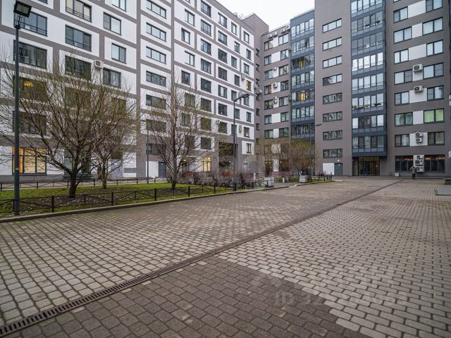 Несмотря на 4-й этаж 9-этажного дома, квартира очень светлая: окна выходят на юг и север, во внутренний двор-колодец который является самым большим и просторный в комплексе.