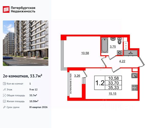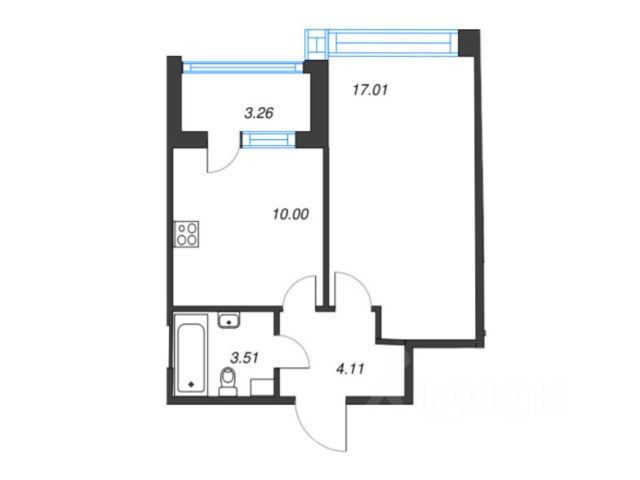Квартира находится на 11 этаже. Общая площадь квартиры 49,99 м2. Функциональная кухня-гостиная 16,31 м2, спальня 11,25 м2 с лоджией 3,64 м2. Комната 10,33 м2. Коридор с местом под шкаф 5,58 м2. Раздельный сан. узел 3,51 м2 + 2,72 м2.