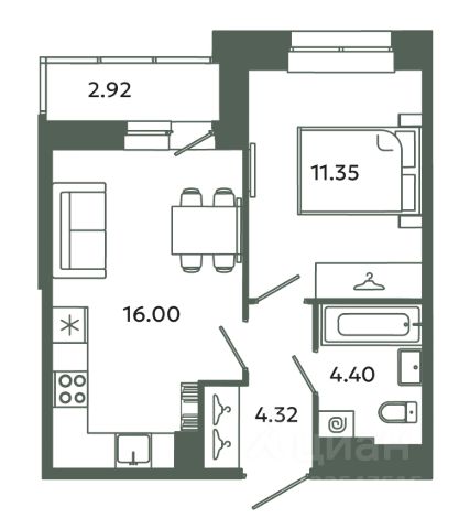 Комнаты: Две изолированные комнаты площадью 14.56 кв.м. и 14.24 кв.м. предоставляют достаточно пространства для комфортного проживания.