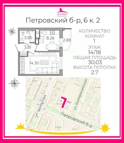 • Простор для жизни: высокие потолки 2,7 м, большая ванная комната (4 метра) + отдельный с\у (2 метра) и на кухне вместительный балкон (3,8 метра) с отделкой и местом для хранения, который может стать уголком для утреннего кофе или мини кабинета. Коридор 11 кв.м. может стать местом для игр в мяч и/или катания на самокате/велосипеде, если на улице плохая погода, а ребенку нужно сбросить энергию. Также был сделан на заказ шкаф-купе с полочками около ванной комнаты, куда можно разместить как ваши пост.белье/полотенца, так и другие вещи, например, инструменты и\или сезонные вещи.