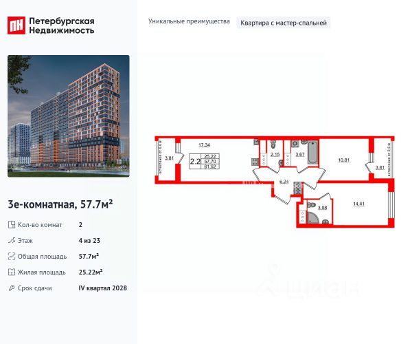 Продается уютная 2-комнатная квартира от застройщика в жилом комплексе "Город звезд" в новом городе на правом берегу Невы. До метро можно добраться на транспорте всего за 13 минут. Удобная, классическая, функциональная европланировка, большая кухня-гостиная 15.44 м², вместительная прихожая 7.21 м². Общая площадь квартиры - 50.72 м², жилая 22.4 м², высота потолка 2.77 м. Квартира продается с отделкой "Норд Лайн серый". Что особенного в ЖК "Город звезд"? • Инновационный Лицей Setl с оригинальной архитектурной концепцией и уникальной образовательной средой • Невский лесопарк под окнами - всегда свежий воздух и полноценный отдых на природе • Четыре тематические площади отдыха с разнообразным благоустройством • Аллея Звёзд - променад протяженностью 5 км с ландшафтным озеленением, зонами отдыха и велодорожкой • Выход на набережную реки Утки, где можно порыбачить или взять напрокат лодку • Единая входная группа с ресепшен и подземный паркинг