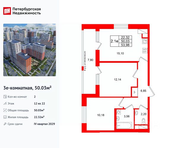 Купить квартиру в кирпично-монолитном доме рядом с метро Рыбацкое