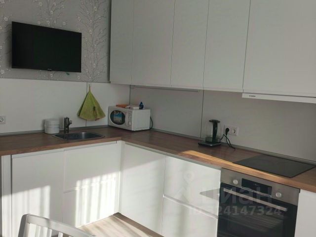 Встроенная кухня с варочной панелью Воsсh и вытяжкой шведского производства (покупалась в IКЕА) остается в подарок. Кухня была изготовлена под заказ, фасады шкафов выполнены из надежного материала акрила. Вся фурнитура иностранного производства, в отличном состоянии. Рабочая зона и ниша для хранения оснащены подсветкой.