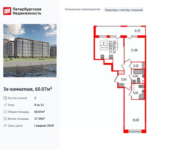 Если говорить о районе, то комплекс располагается на Октябрьской набережной Невы. Из практических плюсов можно отметить: