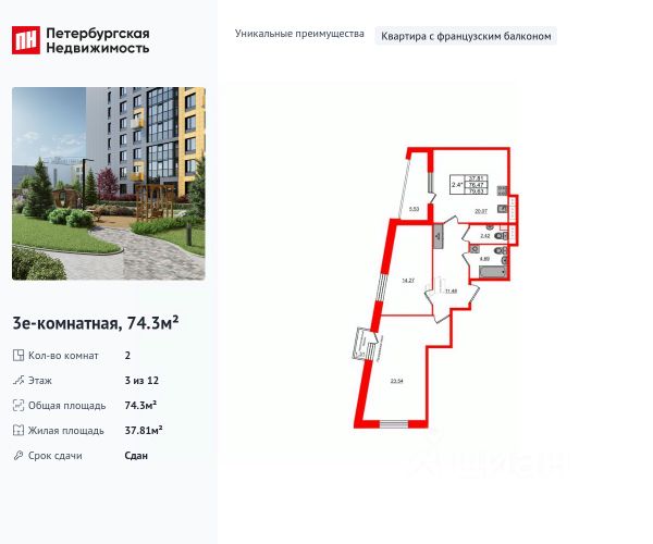 Продается просторная студия от застройщика в жилом комплексе "Прайм Приморский" в динамичном Приморском районе. До метро можно добраться на транспорте всего за 15 минут. Удобная, классическая, функциональная европланировка, просторная прихожая 5.12 м². Общая площадь студии - 27.1 м², жилая 18.45 м², высота потолка 2.77 м. Квартира продается с отделкой "NORD LINE SILVER ВК". Что особенного в ЖК "Прайм Приморский"? • Живописные виды на Шуваловский карьер и лесной массив • "Парящие" французские балконы • Центральная входная группа • Креативное пространство в центре проекта, летняя терраса для отдыха • Приватные лаундж-зоны на крыше домов