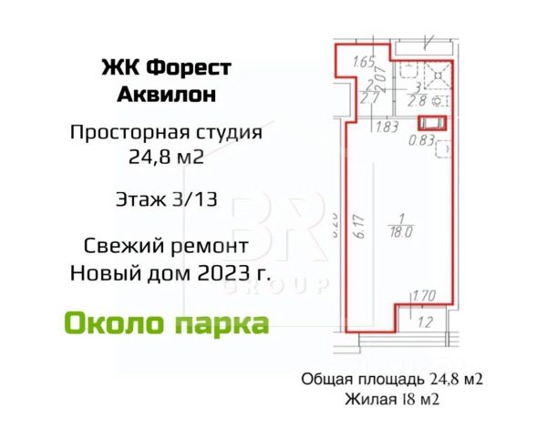 Продаётся уютная просторная СТУДИЯ 24,8 м2 на 3 этаже 13-этажного кирпично-монолитного дома комфорт-класса в Приморском районе. ЖК Forest Аквилон от качественного застройщика Аквилон — отличный вариант для жизни в хорошем районе в непосредственной близости от парка или вариант для инвестиций, сдачи в аренду по хорошей стоимости!