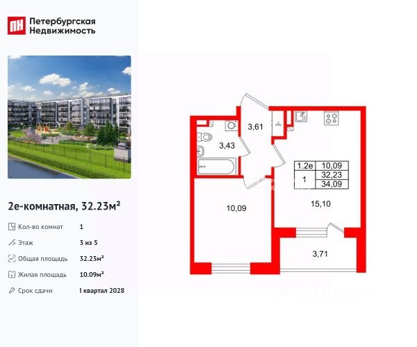 • Студия, общая площадь — 25,94 м² (по планировке) — компактно, современно, удобно.