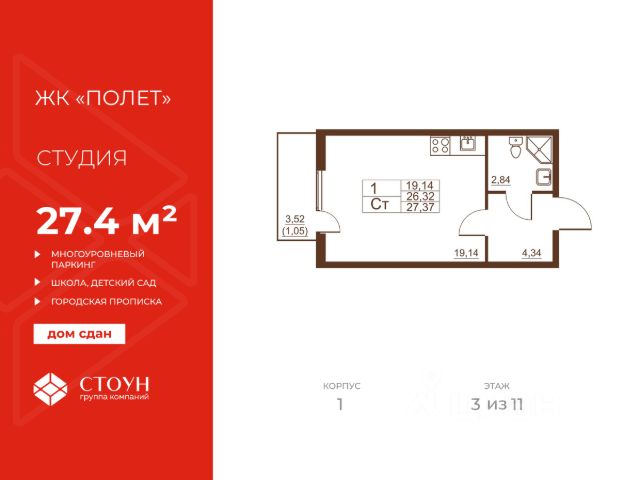 Предлагаем вам уникальную студию в новом доме (2020 год постройки), где продумана каждая деталь. Основные параметры: общая площадь без лоджии — 24,9 м²; общая площадь с лоджией — 28,9 м²; жилая комната — 16,9 м², квадратной формы, отлично подходит для зонирования пространства; прихожая — 4,2 м², с местом под мебель; санузел — 3,8 м², оборудован ванной, есть место под стиральную машину (все выводы сделаны); отапливаемая лоджия — 4 м², с качественной отделкой и шестью окнами, станет вашим дополнительным жилым пространством.