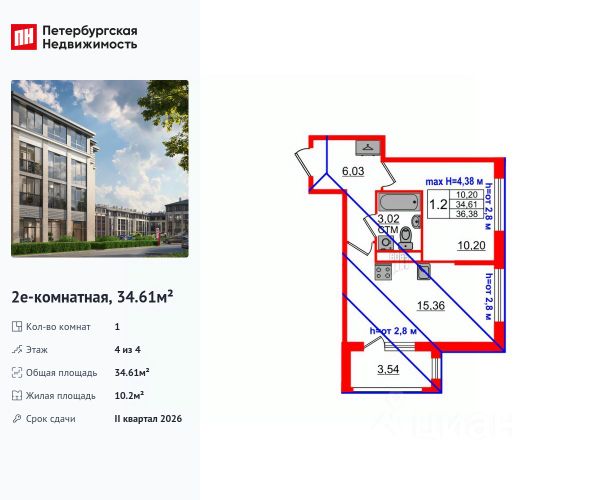 Продается просторная 1-комнатная квартира от застройщика в жилом комплексе "Дворцовый фасад" в неповторимом Петродворцовом районе. До метро можно добраться на транспорте всего за 25 минут. Удобная, классическая планировка, кухня 10.21 м², просторная прихожая 4.62 м². Общая площадь квартиры - 35.07 м², жилая 17.01 м², высота потолка 2.75 м. Квартира продается с отделкой "NORD LINE WHITE". Что особенного в ЖК "Дворцовый фасад"? • В окружении дворцово-парковых ансамблей: Стрельна, Константиновский дворец, Петергоф, парк Новознаменка и Сосновая поляна, Шунгеровский лесопарк • Два собственных парка: парадный верхний для спокойного отдыха, нижний для активных занятий • Проект, соответствующий стандартам экологичного строительства, энергоэффективности, экономии и комфорта • Квартиры с саунами, возможностью установки камина и палисадниками • Малоэтажный жилой комплекс: всего 4 этажа, более половины квартир с увеличенной высотой потолка: от 3 до 5,5 м