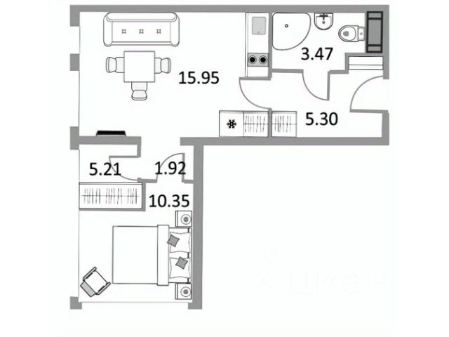 2) Есть вся необходимая техника: телевизор, стиральная машина, варочная панель, холодильник, посудомоечная машина.