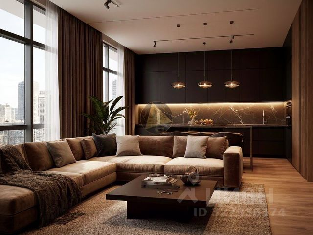 Благодаря большим панорамным "окнам в пол" квартира наполнена естественным светом