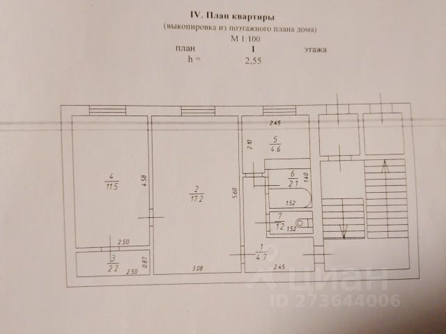 - Квартира располагается на 3 - м этаже 4 - х этажного кирпичного дома 1961 года постройки ( высокий 1-ый этаж );