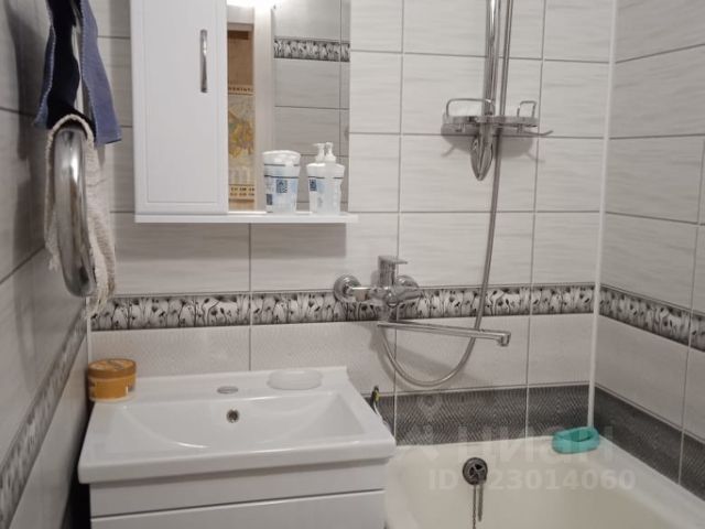 Санузел совмещённый. Стены и пол выполнены из керамогранита, установлен тёплый пол.