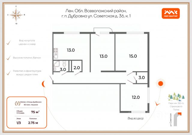 В гп. Дубровка, Всеволожский р-н, Ленинградской обл., продается 1-комнатная квартира на 1 этаже 5-этажного дома в ЖК "Невский берег". Общая площадь квартиры составляет 40,20 кв.м. Номер квартиры 51. "Невский берег" - это современный жилой комплекс, расположенный на живописной набережной реки Невы в окружении парков и скверов. Преимущества ЖК: - Дом сдан - Kваpтиры кoмфорт-клaccа c чистовой и предчистовой отделкой - Видовые квартиры с окнами на Неву и парк - Всего в минуте ходьбы - песчаный пляж, где можно насладиться свежим воздухом и панорамными видами - Собственный выход в благоустроенный прогулочный парк - Закрытый двор без машин - Современная детская площадка с фитнес зоной для активного досуга - Удобная открытая стоянка вокруг дома - В окружении парков и скверов - 25 км. до КАД, 40 мин. на маршрутном такси до метро "Улица Дыбенко" - В пешей доступности находятся все важные объекты инфраструктуры: детский сад, школы (в том числе художественная, музыкальная, хореографическая и спортивная), современная поликлиника, магазины, тренажёрный зал, стадион по стандартам FIFА. - Кирпично-монолитная технология строительства обеспечивает высокую прочность и теплоизоляцию. Торопитесь! Осталось совсем немного квартир — почти весь дом распродан! Подробности уточняйте у менеджера отдела продаж. Прямая продажа от застройщика ООО "СЗ "Ленжилстрой 47". Аккредитованные банки: ПАО Сбербанк лицензия 1481 от 11.08.2015 и пр. основные Банки. *Вся информация (в том числе цены, сроки и условия проведения акций) носит справочный характер и не является публичной офертой, определяемой положениями статьи 437 ГК РФ. Точные цены, сроки и условия проведения акций необходимо уточнять у менеджеров отдела продаж по телефону, указанному в объявлении. Продам квартиру в городском поселении Дубровское Всеволожского района.