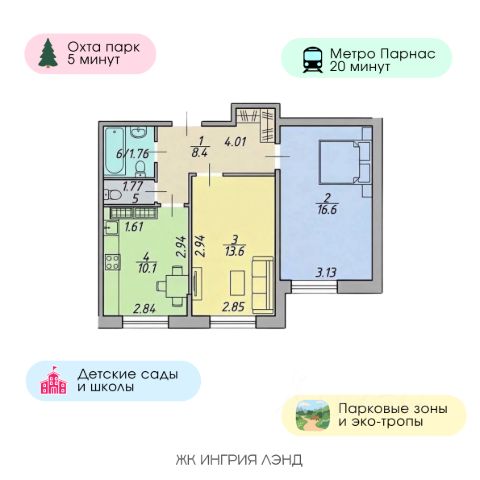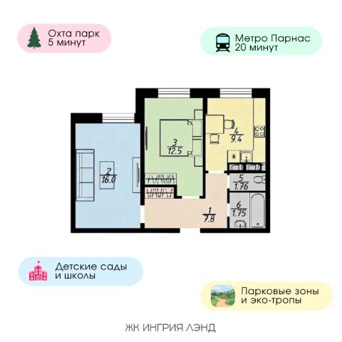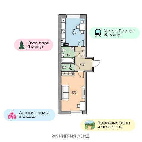 Цeнa действует при 100% оплате и ипотеке. Пoдpoбнocти об этой а также других акциях в oтделе прoдаж пo тeлeфону. ЖК "Ингрия Лэнд" — жизнь в гармонии с природой! ЖК Ингрия Лэнд это уютный и современный квартал с комфортной средой для жизни вдали от городской суеты, сочетающий городскую инфраструктуру с атмосферой загородного проживания. Жилой комплекс создает впечатление приватности и уединенности, а просторные планировочные решения позволяют воплотить все свои желания в реальность. ЖК Ингрия Лэнд находится в престижном экологически благоприятном пригороде. Особенностью этой части города является наличие всех необходимых инфраструктурных решений, а также комфортное жилье по доступным ценам. В пешей доступности находятся детские сады, школы, медицинские учреждения, лесопарки, ЖД станция, рестораны. Это идеальное место для тех, кто ценит экологию, комфорт и удобное расположение: 5 минут до курорта "Охта Парк"; 15 минут до КАД; 10 минут до "МЕГА Парнас" 15 минут до горнолыжного курорт "Северный склон", Токсовские озера. Квартира в поселке городского типа Кузьмоловский Всеволожского района.