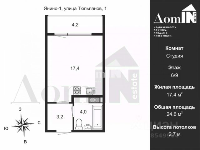Арт. 66463011 УЮТНАЯ СТУДИЯ В ЖК "ЯНИЛА-ДРАЙВ" Один из топовых ЖК в районе 2,5 км от КАД, в 20 минутах езды от станций метро "Проспект Большевиков" и "Ладожская" (курсируют маршрутки), до центра города на машине 20 минут. Уютный и комфортный пригород Петербурга в окружении природы (Ржевский лесопарк, Колтушские высоты, Ковалевское лесничество, Лазурное, Колтушское, Ждановское, Коркинское озера). Корпуса разной этажности (8-12), с продуманной транспортной и пешеходной логистикой, комфортными общественными пространствами, социальными объектами в шаговой доступности и развитой коммерческой инфраструктурой. Закрытые безопасные дворы с видеонаблюдением, безбарьерная среда, спортивные и детские площадки, велосипедные дорожки, для автовладельцев предусмотрены паркинги. Квартира расположена на 6 этаже 9-этажного дома. S=24.6 кв.м, Жилая - 17 кв.м. Мебель и техника остается. *Охраняемая закрытая территория и видеонаблюдение; *Благоустроенный закрытый двор оснащен игровыми детскими площадками и тренажерами; *В каждом подъезде на 1 этаже помещение для хранения велосипедов и колясок; *Со стороны лицевого фасада дома просторная парковка под шлагбаум; Район с хорошо развитой инфраструктурой, где есть все для комфортного проживания и отдыха: • Сетевые магазины Пятерочка. Дикси, Магнит, Светофор, Перекресток, • Аптеки, строительные и хозяйственные магазины. • Детские сады, школы, стадион и развивающие центры для детей. • Прогулочные зоны, скейт парк и спортивные площадки. 2 взрослых собственника. Покупали на прямую у застройщика, без ипотеки, обременений нет. Мат капитал не использовали, долгов по КУ нет. Полная сумма в ДКП. Показы по согласованию, в удобное время. Остались вопросы-звоните!! В случае необходимости одобряем ипотеку под самую выгодную процентную ставку (подаем один пакет документов в несколько банков и выбираем подходящий именно вам). Партнерские отношения с основными крупными банками позволяют получить одобрение. Продается квартира на улице Тюльпанов в поселке Янино-1 в городском поселении Заневское.