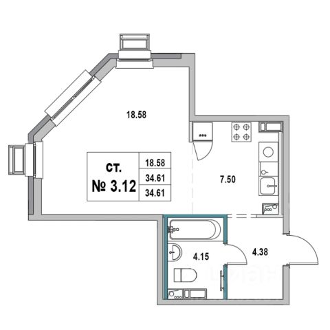 Продаётся студия в строящемся доме (Дом 1), срок сдачи: I-кв. 2026, общей площадью 34.61 кв.м., на 3 этаже. Новый жилой дом от застройщика "Унистрой" расположен по адресу Ленинградская область, Выборг, 2-я Южная улица.