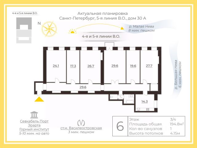 Клубный дом "Литера" от RBI. Новая "Литера" вашей жизни Камерный проект бизнес-класса на 195 квартир строится в 6 минутах от метро "Елизаровская" в непосредственной близости от исторического и делового центра Петербурга. Дом располагается в 700 м от набережной Невы по Большому Смоленскому проспекту: встречать рассветы и провожать закаты, наслаждаясь захватывающей панорамой города и зелёным окружением Невского района, можно из окон собственной квартиры! До Московского вокзала и центральной части Невского проспекта — 15 минут с учётом пешей прогулки до "Елизаровской" от дома. Добраться на автомобиле можно за то же время. До аэропорта "Пулково" 23 км. Дом состоит из двух 12-этажных секций, которые располагаются друг напротив друга, и ещё двух 8-этажных. Вместе секции образуют букву "Л" — форма дома отсылает к его названию. Планировки — от студий до просторных евро-четырёхкомнатных. Площадь квартир — от 24 до 121 м², высота потолков на типовых этажах — 2,8 м. На верхних этажах располагаются квартиры с террасами. Для романтиков — квартиры с эркерами. Для ценителей функциональных планировок — квартиры с выделенной рабочей зоной кухни и большой гостиной-столовой, планировки с мастер-спальнями и гардеробными. Ритмичную архитектуру в стиле лофт дополняют характерные "литеры" эркеров. Основной объём внешних фасадов из красного кирпича обеспечивается за счёт фламандской 3D-кладки и декоративных рустов. Со двора фасады выполнены в светлых тонах — чтобы усилить ощущение простора и безопасности. Единая дизайн-концепция продолжается в лобби дома. Сочетание тёплого кирпича с холодным металлом и стеклом создаёт харизматичное, брутальное настроение интерьера парадной группы. Чёткость вертикальных объёмов смягчается округлыми формами стойки ресепшн и декоративных куртин, а большие витражные окна создают иллюзию бесконечности пространства. Придать мыслям стройную форму можно будет в специально оборудованной зоне коворкинга только для жителей. Здесь же в лобби со свободным Wi-Fi появится зона ожидания для гостей и уникальный арт-объект от Владимира Абиха. Диптих из объёмных оттисков друг друга при наложении образует единое целое и запечатывает в себе фразу "Между нами". Эта инсталляция — метафора общности между нами, воплощение в искусстве объективной истины о том, что хотя вокруг много людей, лишь с немногими ощущаешь неподдельную связь и самого себя кем-то цельным. Вход на приватную территорию — по электронному ключу бесконтактного доступа. Во дворе высадят взрослые деревья и цветущие растения, оборудуют зону для занятий спортом, места отдыха для взрослых и экологичную детскую площадку с развивающими элементами для малышей и подростков. Двор без машин — можно отпускать детей на прогулки и не переживать за их безопасность. Для жителей оборудуют тёплый подземный паркинг, велопарковки и колясочные. На охраняемой территории у дома появится гостевая стоянка. Дом "Литера". Для авторов своей жизни Продается квартира в стиле loft в Санкт-Петербурге.
