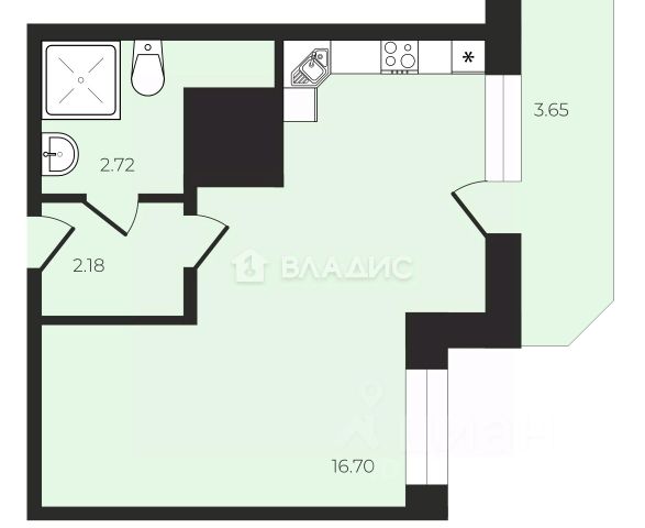 Квартира-студия 28 кв.м (в т.ч. лоджия 4,5 кв.) Дом сдан, придомовая территория благоустроена.