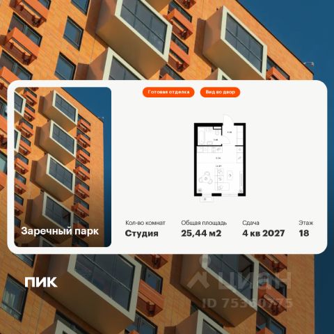 Продаётся квартира-студия площадью 25,1 кв.м на 23 этаже 24 этажного дома (Корпус 6, Секция 2) проекта ПИК Заречный парк. Светлый просторный подъезд на уровне земли, функциональная планировка, большие окна, c отделкой. Жилой квартал "Заречный парк" расположен в районе Новое Девяткино Ленинградской области. В 7 минутах на автомобиле - станция метро "Девяткино", до КАД - 10 минут на машине. В 2026 году будет достроена шестиполосная трасса в обход Мурино, примыкающая к Пискарёвскому проспекту. Она станет дополнительным выездом на КАД для жителей "Заречного парка". Проект включает восемь домов высотой от 15 до 24 этажей, три многоуровневых паркинга, детский сад и школу. В зелёных дворах-парках будут оборудованы современные детские и спортивные площадки, обустроены места для отдыха. На первых этажах разместятся магазины, кафе и другие сервисы. Планировки продуманы так, чтобы каждый квадратный метр жилой площади можно было эффективно использовать. Все квартиры сдаются с готовой отделкой. Артикул 973312 (Застройщик ООО "СПЕЦИАЛИЗИРОВАННЫЙ ЗАСТРОЙЩИК ИНВЕСТАЛЬЯНС") [cn_sbp_1656488]