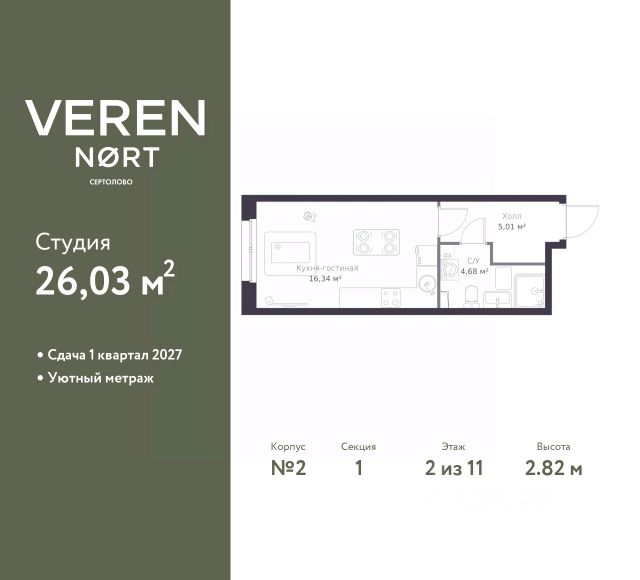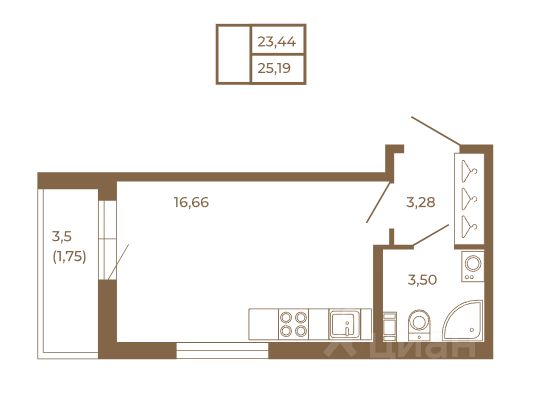 Квартира-студия расположена на 4-м этаже 4-х этажного жилого дома. Общая площадь квартиры - 24,4 кв.м., высота потолка 2.75 м., застекленная лоджия.