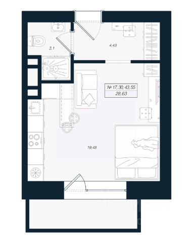 Продаётся студия в строящемся доме (Феникс), срок сдачи: I-кв. 2027, общей площадью 28.63 кв.м., на 5 этаже.