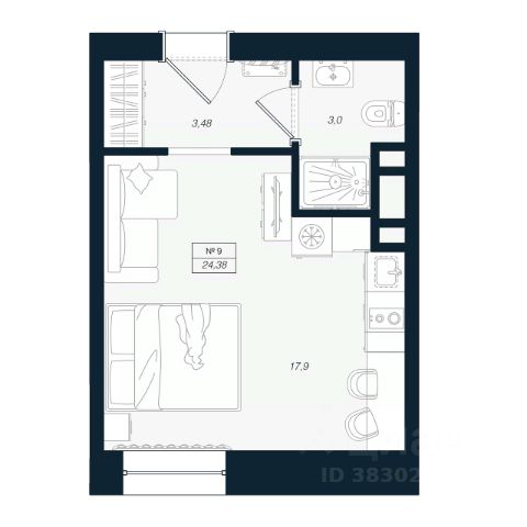 Продаётся студия в строящемся доме (Феникс), срок сдачи: I-кв. 2027, общей площадью 24.38 кв.м., на 1 этаже.