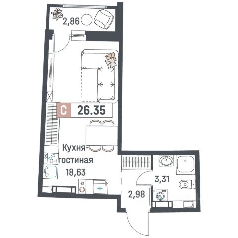 +Отличная возможность для размещения кухонной зоны, рабочего места и зоны д/отдыха;