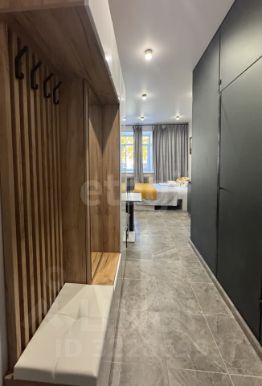 Все апартаменты сдаются с полной чистовой отделкой, выполненной в концептуальном индустриальном стиле. Стены оформлены обоями под покраску в сером оттенке. Одна из стен акцентная - с декоративной штукатуркой, имитирующей бетон. Элементы черного металла представлены в трековых светильниках, дверной фурнитуре и сантехнике. На полу уложен износоустойчивый ламинат с деревянной фактурой. Еще одним элементом индустриального стиля в отделке апартамента является крупноформатный керамогранит на полу и стенах санузла, имитирующий фактуру и цвет кортеновской стали.